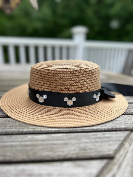 Dark taupe Straw Hat with long ribbon